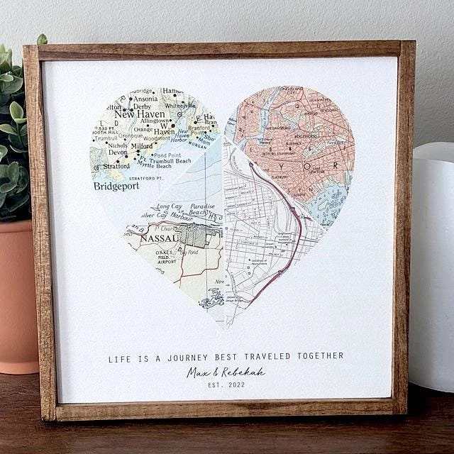 This custom map print is a perfect anniversary gift for couples, wedding gift, or meaningful gift for your husband, wife, or partner. Designed for travel lovers and sentimental moments, each piece is carefully crafted to reflect your unique journey together. Feature favorite vacation spots, engagement/wedding/honeymoon locations, places lived, or places yet to go - the possibilities are endless!