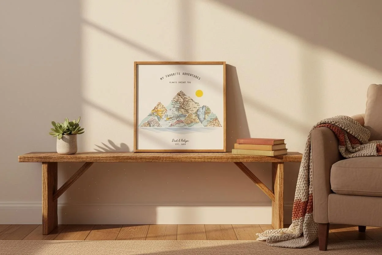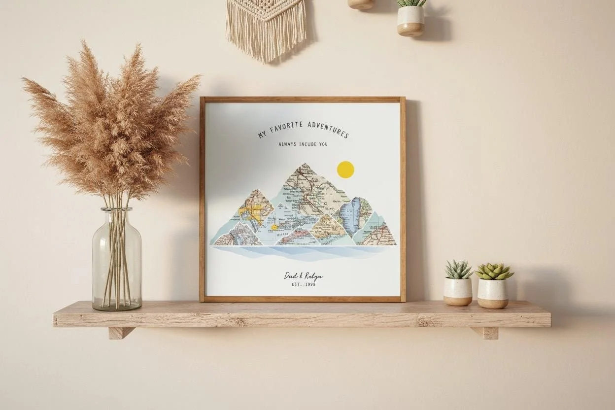 Celebrate your unique love story with this stunning wooden art print featuring intricate maps in a mountain design, symbolizing the journey you and your partner have taken together. Perfect for capturing and cherishing your special moments. A thoughtful gift for weddings, anniversaries, or any meaningful occasion. Crafted with love to last a lifetime.