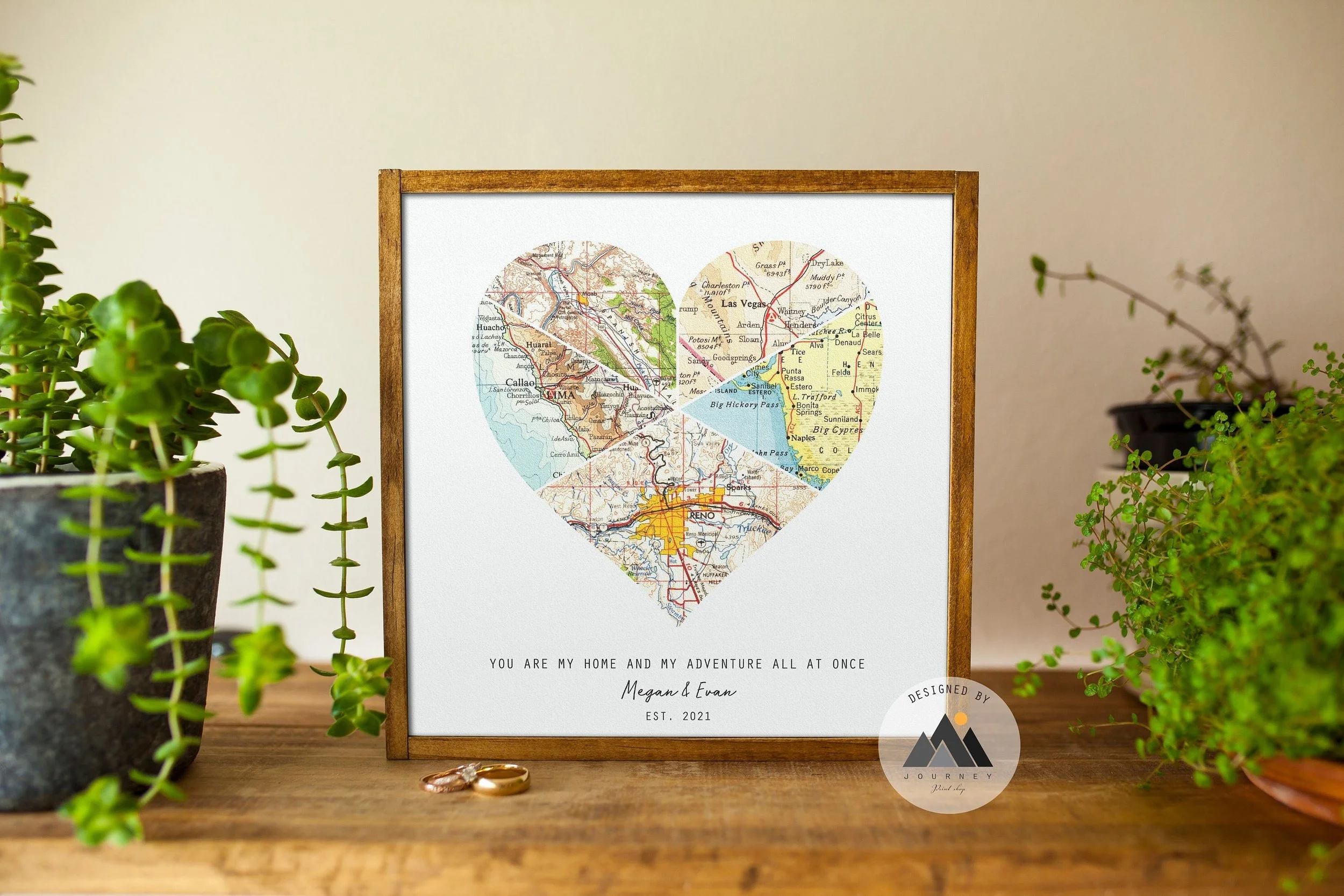 Custom Heart Map Unique Couples Wedding/Engagement Gifts | Anniversary Gift Ideas for Husband, Wife Travel Map Print