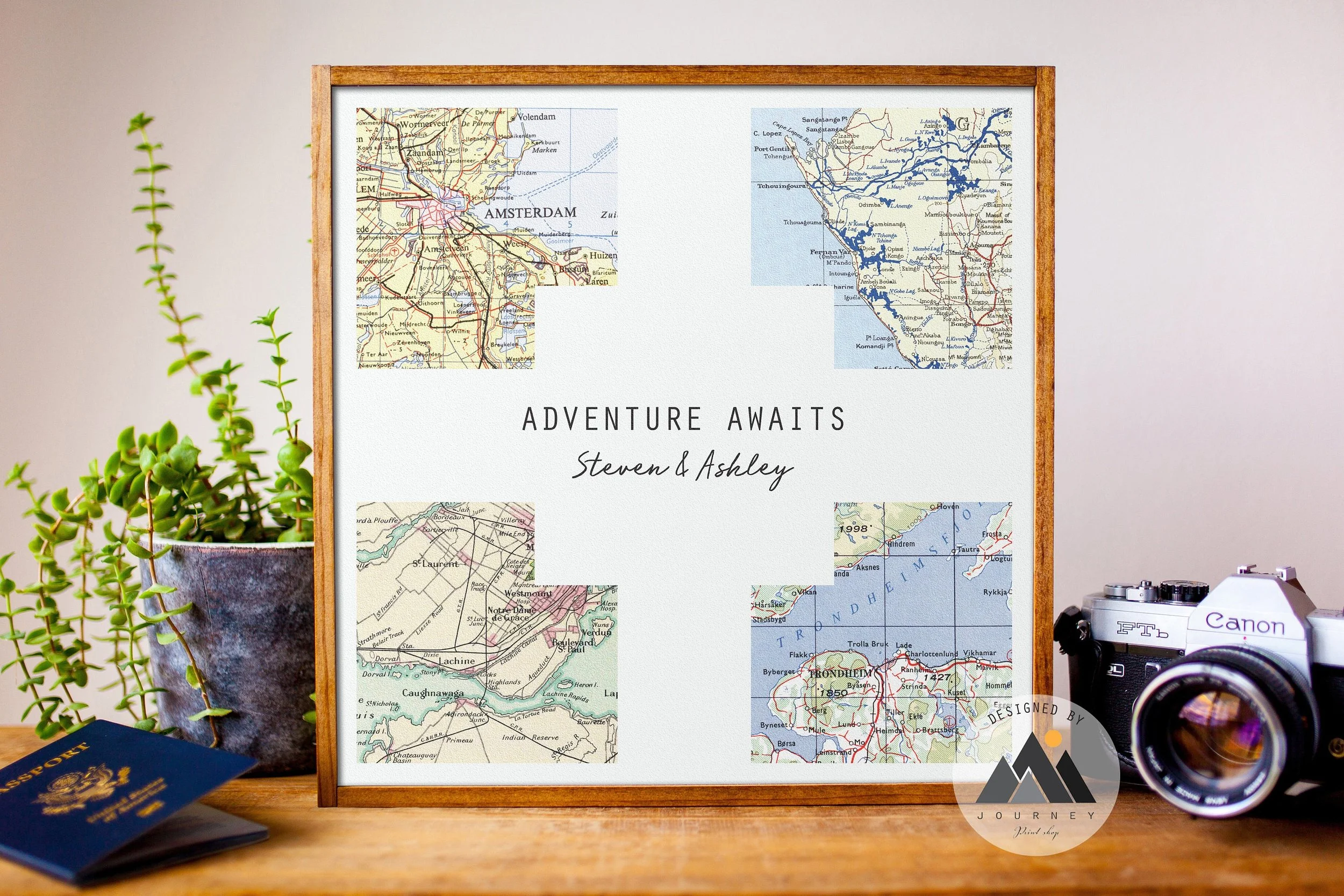 This custom map art print makes unique travel-inspired engagement/wedding/housewarming gifts for couples, 5th anniversary gifts for him (or 50th anniversary as gifts for parents!), personalized gifts for husband, wife, groom gift, or birthday gift for him or her. Our travel gifts feature favorite vacation spots, engagement/wedding/honeymoon locations, places lived, or places yet to go - the possibilities are endless!