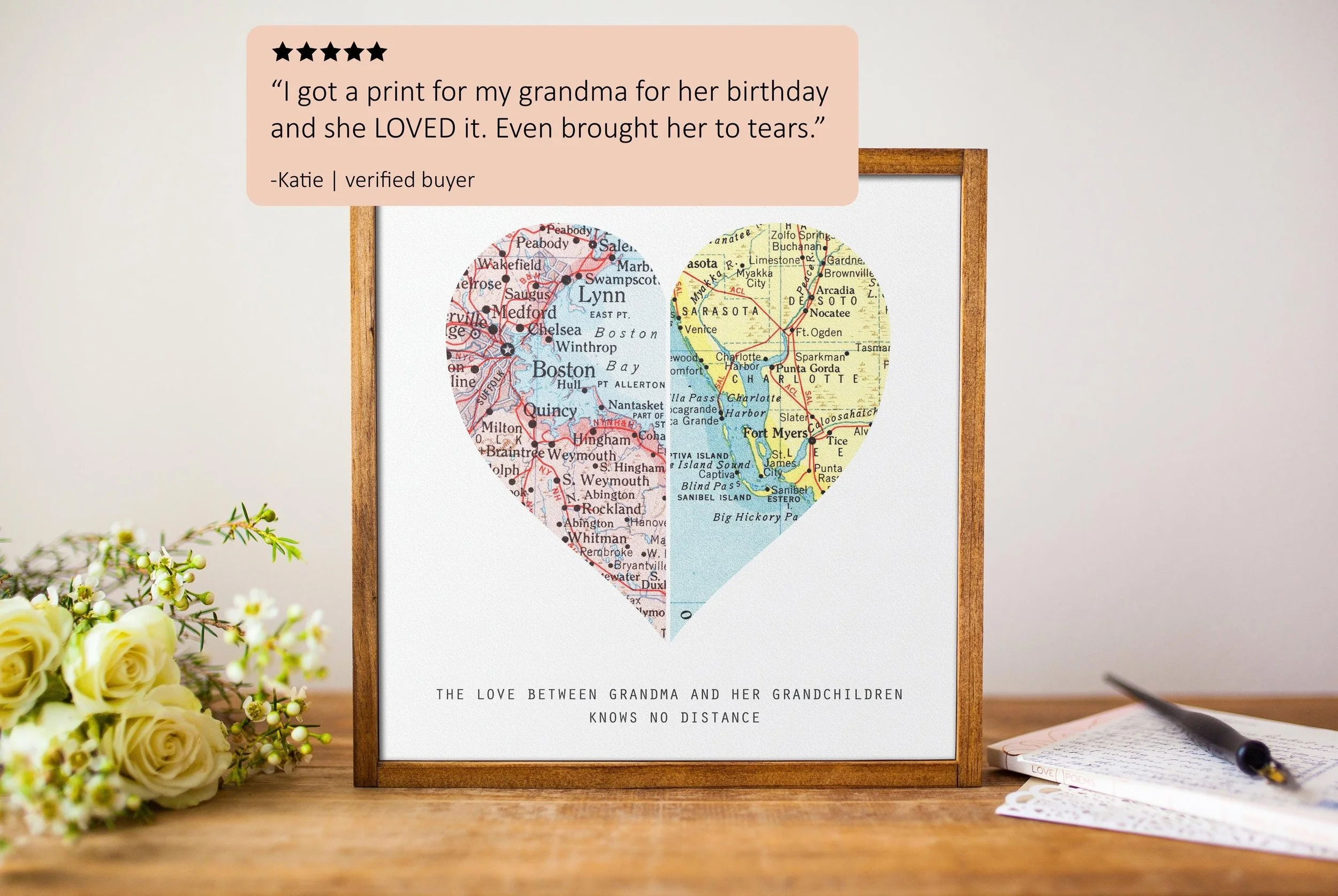 Does your family live far apart? Are there places that hold a special meaning for your family? This beautiful framed wood heart map print will make the most perfect long distance grandkids sign gift, 80th/90th birthday gift or Mothers Day gifts for Grandma.