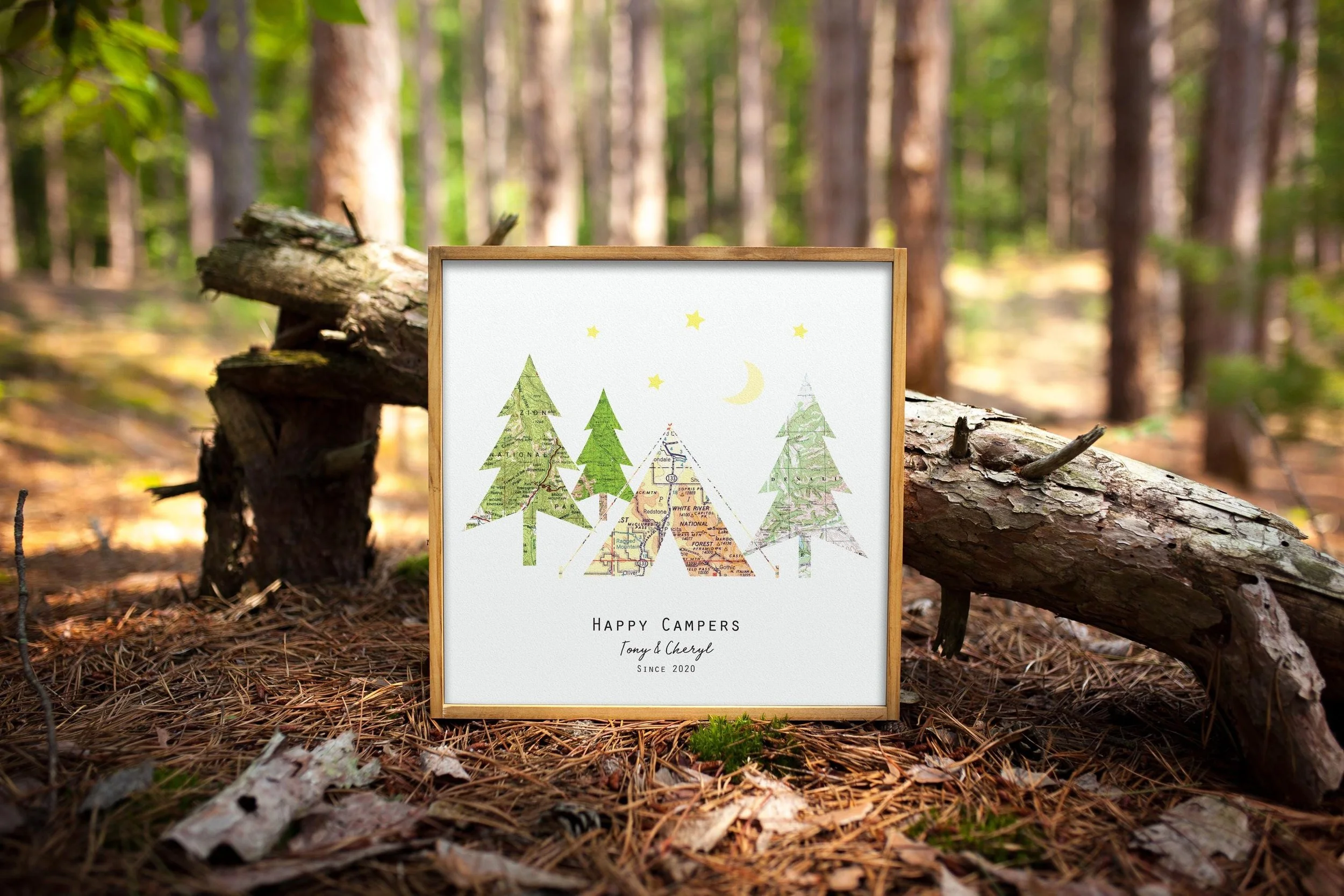 Personalized Camping Couple Map Art | Anniversary Gift