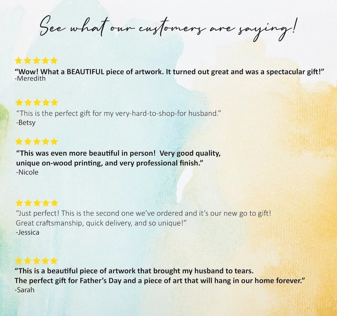 **WOOD PRINTS** *Art is printed directly on wood *Wood print includes handmade frame and arrives ready to hang (as shown in photos)! *Print can hang on the wall or easily stand on its own